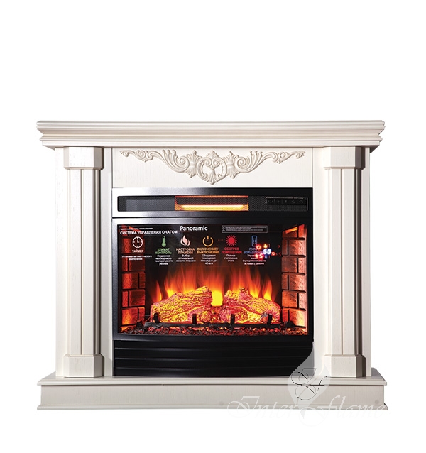 Электрический камин Джениус (Genius) давно зарекомендовавшая себя модель, в сборе с современным очагом, последнего поколения Panoramic 25 LEDFX QZ, Очаг обладает потрясающим эффектом пламени и муляжом дров расположенных за панорамным фронтальным стеклом. С помощью регулятора яркости огня можно задать желаемую яркость пламени (5 уровня регулировки). Инфракрасный обогреватель (3 трубки, а не как у аналогов 1), спрятан в верхней части очага и обеспечивает обогрев в холодную погоду. Инфракрасный обогреватель является самым современным способом обогрева и обладает рядом преимуществ, такими как: практически не сжигает кислород, высокая скорость обогрева, отсутствие запаха и экономия электричества.